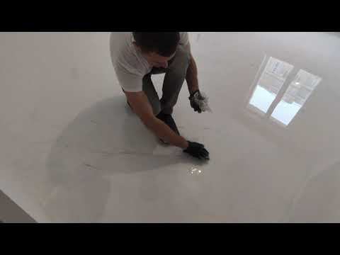 Перезалив эпоксидного пола из прошлого видео. Белый пол с минимальным количеством прожилок.