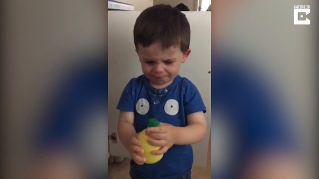 2-х летний мальчик впервые попробовал лимонный сок, его реакция была ожидаемой.