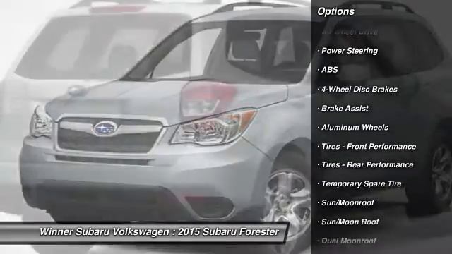 If you are searching for a new car or truck, visit us, your local auto dealer Winner Subaru Volkswagen in Dover, Delaware! Winner Subaru | Winner Volkswagen | Dover, Delaware | New & Used Subary VW Dealership | auto, car, truck, dealer, dealership, used, new, sales, Dover, Delaware, Subaru, Volkswagen 2015 Subaru Forester 2.5i Touring - $31797 http://www.doversubaruvw.com For more information on this vehicle and our full inventory, call us at (302) 734-8200 Winner Subaru Volkswagen 1387 North DuPont Highway Dover DE 19901 Don't wait another minute! The Winner Subaru Volkswagen EDGE! Dover's Finest Pre Owned Vehicles. Hugh Selection Of Used Cars To Choose From Like This One.Don't pay too much for the gorgeous-looking SUV you want...Come on down and take a look at this gorgeous 2015 Subaru Forester. This Forester will take you where you need to go every time...all you have to do is steer! It is nicely equipped.This dealership offers the details of this vehicle in good faith and utilizes the most current technology and software available, however due to the less than 100% accuracy of vin decoder software used to list the vehicle options we cannot guarantee or warrant the accuracy of this information. A buyer should investigate such details as the buyer desires validated. This vehicle is offered subject to prior sale, price change, or withdrawal without notice. The dealership is not responsible for misprints of vehicle information or pricing. Please call the dealership to confirm availability, accuracy and schedule an inspection. New vehicle specials include all applicable discounts and incentives available in dealership sales region. Specialty rebates such as Military and College Graduate as examples are NOT included in special pricing. Please call the dealership if you qualify for specialty rebates as this will save you even more!