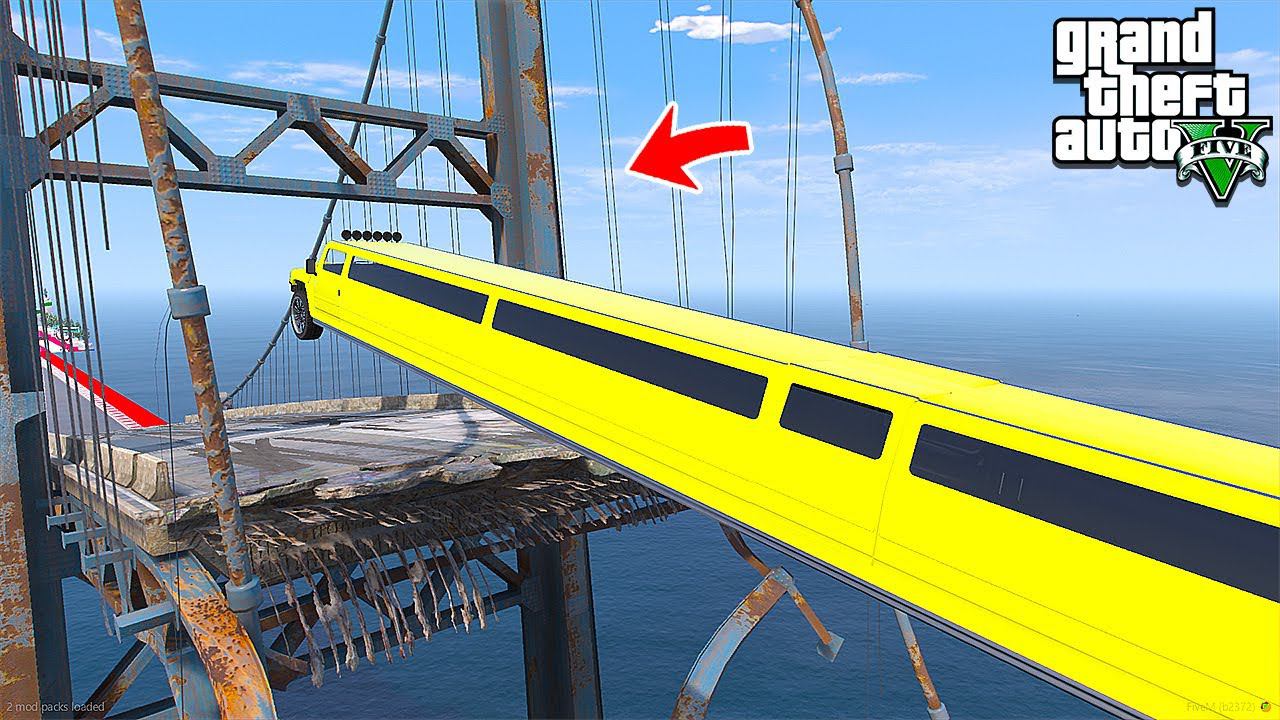 ПЕРЕПРЫГНУЛ РАЗРУШЕННЫЙ МОСТ на САМОМ ДЛИННОМ ЛИМУЗИНЕ в ГТА 5 МОДЫ - ЭКСПЕРИМЕНТЫ в ГТА 5