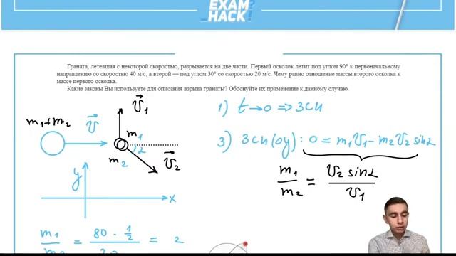 Граната летевшая с некоторой скоростью разрывается на две части Первый осколок летит - 31202