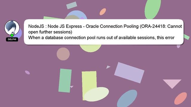 NodeJS : Node JS Express - Oracle Connection Pooling (ORA-24418: Cannot open further sessions) To Access My Live Chat Page, On Google, Search for "hows tech developer connect" Here's a secret feature that I promised to disclose to you. This is a YouTube's feature which works on Desktop. First, Make sure this video is playing. Then, type the letters 'awesome' on the keyboard. It will change your youtube progress bar into a flashing rainbow. An introduction to myself in a few words, Hello there, my name is Delphi. Let me assist you in answering any questions you may have. NodeJS : Node JS Express - Oracle Connection Pooling (ORA-24418: Cannot open further sessions) Let me know if you have more specific questions or concerns by leaving a comment or starting a chat. Don't hesitate to share your answer or insights on the answer by leaving a comment below. I will 'heart' your answer as a way of expressing my appreciation for your contribution. sessions) Cannot - Node NodeJS JS (ORA-24418: Pooling Oracle Express Connection further : open
