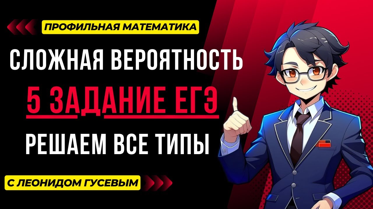 Задание на Сложную Вероятность в ЕГЭ по профильной математике вызывает трудности у многих выпускников. В этом видео мы научимся решать все разновидности этого задания, а также вспомним необходимую теорию. Если ты еще не смотрел видео про Начала Теории Вероятностей, то в начале необходимо посмотреть его: https://clck.ru/35mUVD Я репетитор и занимаюсь частными индивидуальными занятиями с учениками, чтобы заниматься со мной пиши ? ✔️Мой телеграмм: https://t.me/profimathematic ✔️Занятия со мной: https://goo.su/eNyhN ✔️Моя группа в ВК: https://vk.com/profimathematic Каждый выпускник может успешно решить, как минимум, задания из первой части экзамена при должной подготовке, а я постараюсь в этом помочь! Не знаешь с чего начать подготовку? ? Посмотри мой плейлист со всеми заданиями из первой части ЕГЭ по профильной математике: https://clck.ru/35ZsGt Остались вопросы? Задай их в комментариях! Не забудь поставить лайк и подписаться на канал ;) ?Таймкоды: 0:00 - О чем видео? 0:30 1 задание. Выстрелы. 2:50 2 задание. Фломастеры. 5:30 3 задание. Батарейки. 8:40 4 задание. Окажутся на соседних местах. 10:02 5 задание. Биатлонист. 12:04 6 задание. Игральная кость. 14:04 7 задание. Игральная кость. 16:09 8 задание. Пенсионеры. 20:20 9 задание. Кофе останется в обоих автоматах. 21:31 Формула для совместных событий. Правило сложения. 23:30 10 задание. В одной группе. 25:37 11 задание. Стёкла. 27:48 12 задание. Исправные автоматы. 29:52 13 задание. Гроссмейстер. 30:58 14 задание. Ковбой. 32:44 15 задание. Агрофирма. 34:46 16 задание. Пациент. 37:00 Завершение. #профильнаяматематика #егэ #экзамен
