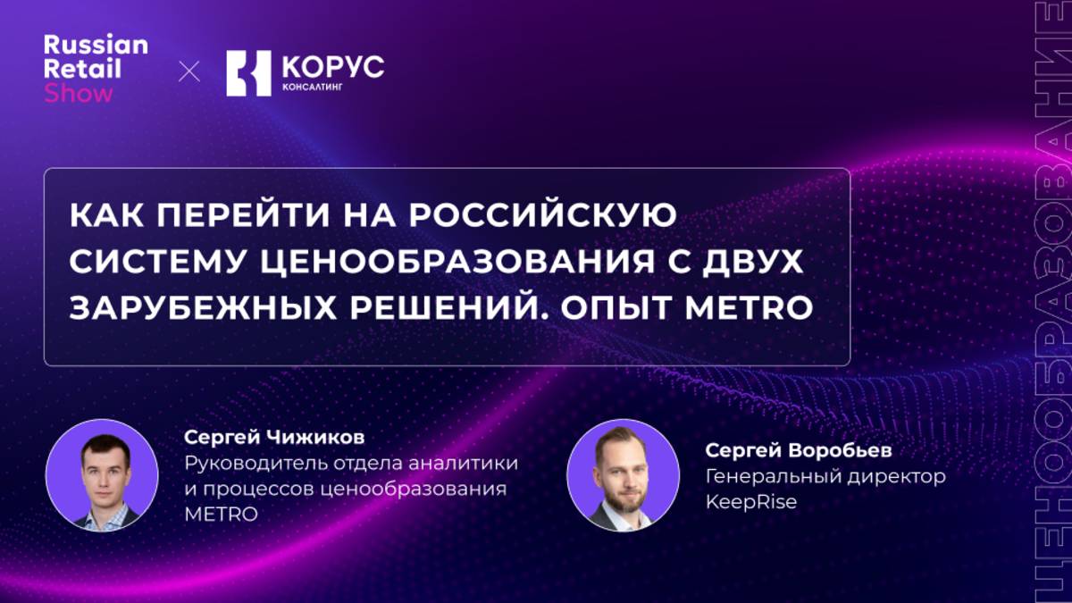Переход с зарубежных решений на российский инструмент — задача не из простых. Как сохранить прозрачность, скорость и управляемость ценообразования в такой ситуации? METRO уже прошли этот путь вместе с KeepRise. Поговорили о том, как устроен российский инструмент умного ценообразования от KeepRise и как прошло внедрение в компании МЕТРО. Спикеры: — Сергей Чижиков, Руководитель отдела аналитики и процессов ценообразования METRO. — Сергей Воробьев, генеральный директор KeepRise.