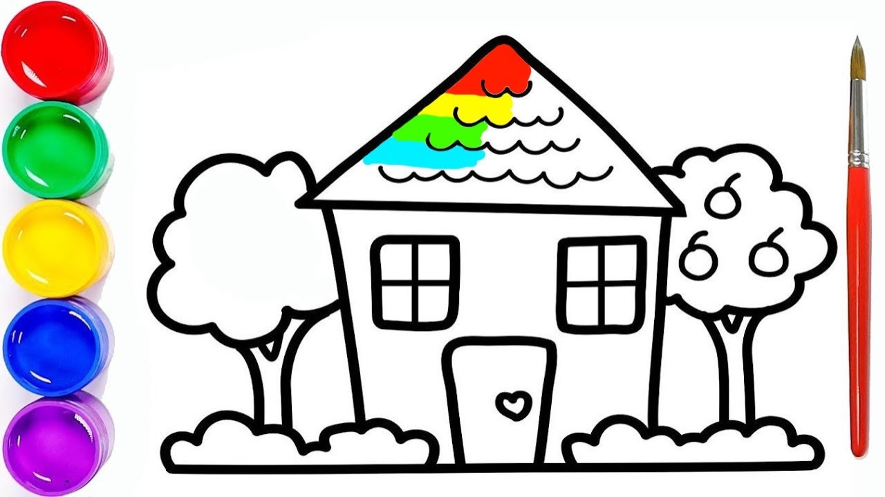 Мультик раскраска для детей и малышей. Новый сборник рисунков. Как нарисовать дом #рисунок#раскраска#мультик#сборникдлядетей