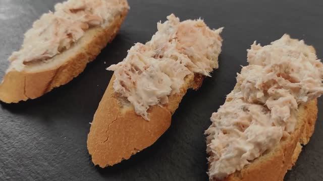 Эта легкая и простая в приготовлении закуска настолько пришлась по вкусу гостям, что ролик с рецептом пришлось снимать фактически не выходя из-за праздничного стола. Для приготовления рыбного риета берем: Сыр творожный - 200 гр Горбуша горячего копчения - 100 гр Чеснок сушеный - 1/4 ч.л Сок лимона - 1/4 ч.л. Соль по вкусу Хрустящий багет Рыбу очистить от кожи и костей. Сыр немного разогреть, чтобы он стал мягким. Все компоненты соединить вместе и хорошо перемешать. #Риет #Паштет #Паштетизрыбы #Горбуша #Горбушарецеп #Мужикиуплиты