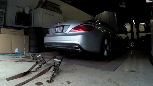 2013 Mercedes-Benz SL550 on the dyno with Speedriven ECU tuning, downpipes, and lightweight performance exhaust system.