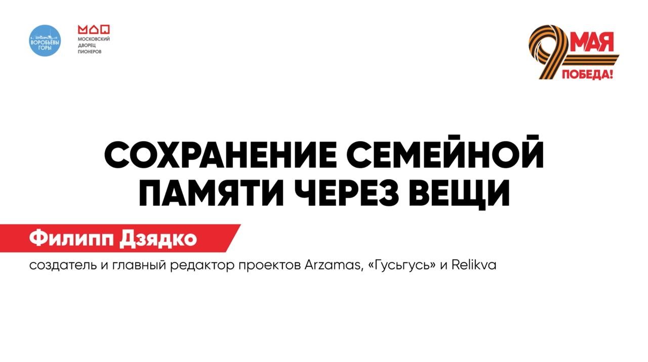 Филипп Дзядко, сооснователь проекта Relikva, расскажет о предметах, сохранивших историю войны: фотографиях, медалях и значках, письмах и вещевых книжках.