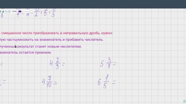 Превращение смешанного числа в неправильную дробь