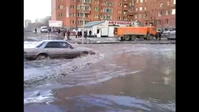 В Новосибирске на ул. 25 лет Октября прямо напротив автомойки машины имеют все шансы и испачкаться, и помыться самостоятельно. Прорвало так прорвало!