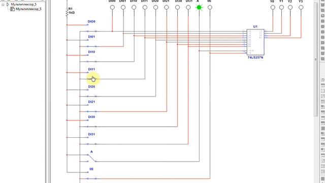 Исследование работы мультиплексора SN74LS257N в Multisim 14.1 Ссылка на описание лабораторной работы: https://disk.yandex.ru/i/gQWhxnmadm_wbw