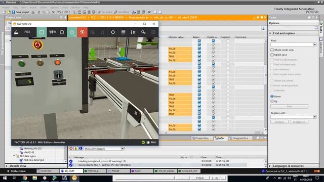 Playing with Factory IO, programming with indirect addressing, using LAD and SCL. Great for education in Classroom!!!!