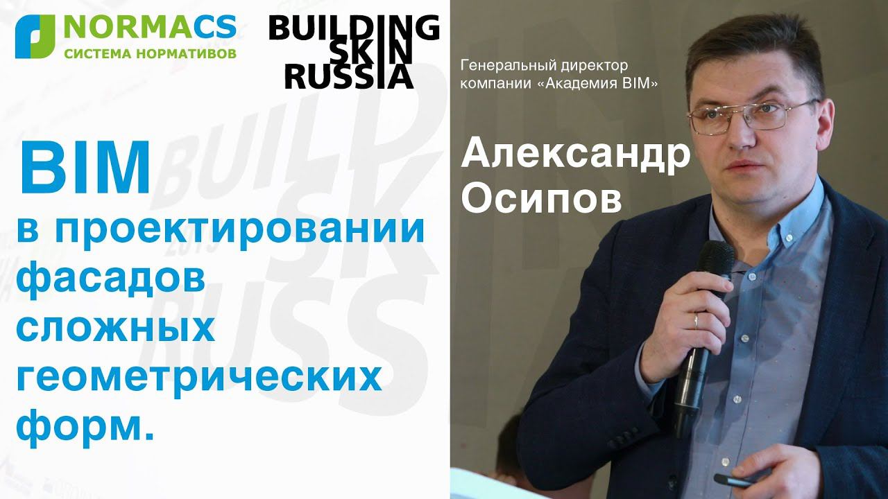 Александр Осипов, генеральный директор компании «Академия BIM». Доклад на Building Skin Russia 2019: "BIM в проектировании фасадов сложных геометрических форм". www.normacs.info