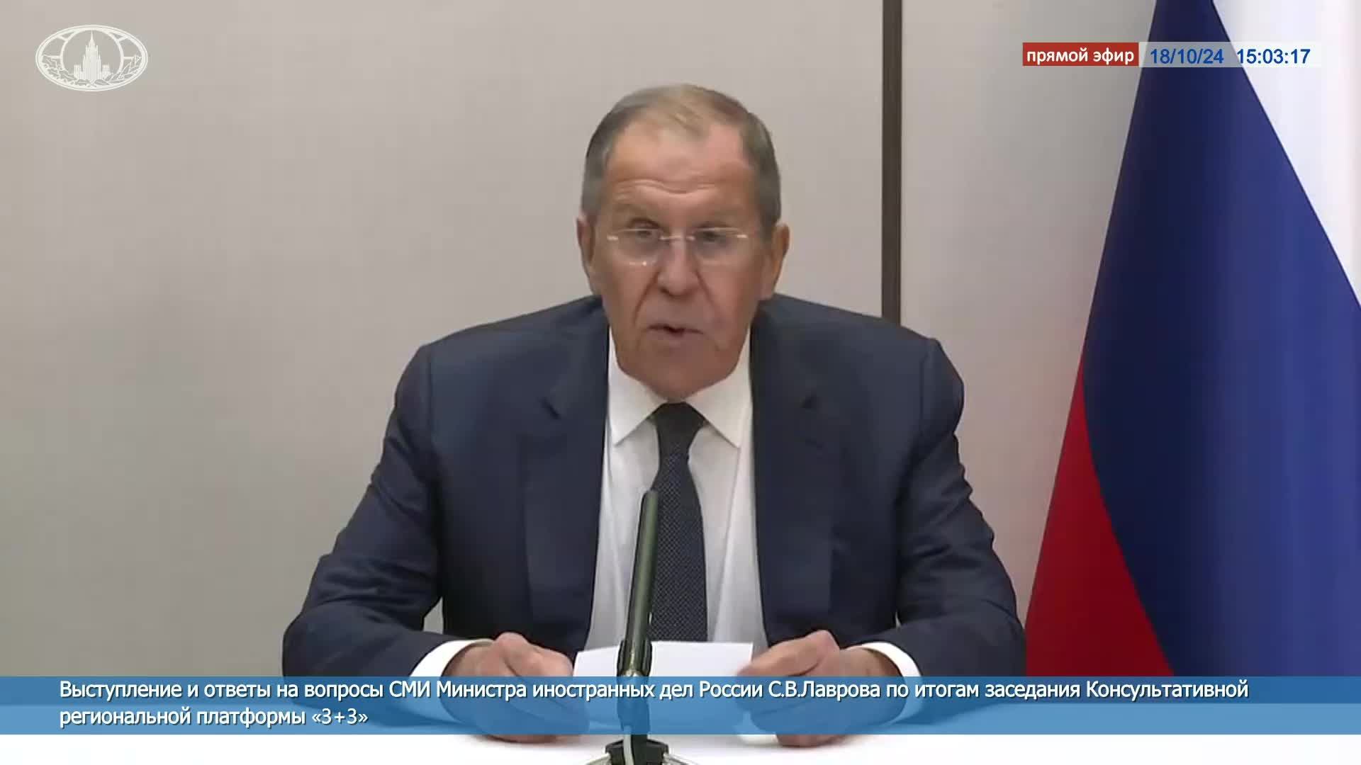 🔴 #ПрямойЭфир: С.В.Лавров по итогам третьего заседания Консультативной региональной платформы «3+3»