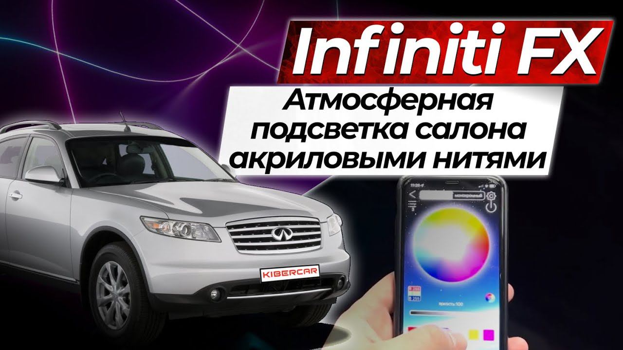 УЗНАТЬ (цену, сроки и т.д.): https://www.kibercar.com/price/ Контакты: https://www.kibercar.com/contact/ Наш сайт: https://www.kibercar.com/site Атмосферная подсветка салона акриловыми нитями. Infiniti FX 2008