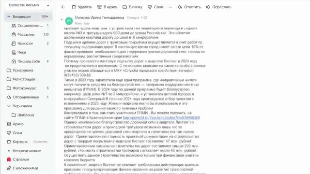 К нам в редакцию обращались жители квартала листвяг с жалобой на отсутствие дорог. Люди жалуются что невозможно даже ходить пешком, потому что всё в лужах, а такси отказываются брать сюда заказы. Особенно остро проблема стоит в школьный сезон, автобусы в квартал так же не ходят.