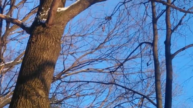 Дятел зимой в городском лесу