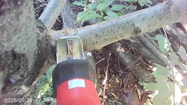 Санитарная обрезка дерева сабельной электропилой WOSAI