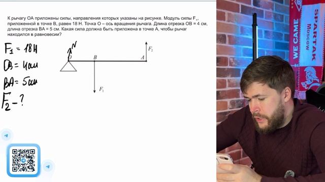 К рычагу ОА приложены силы, направления которых указаны на рисунке. Модуль силы F1 - №40598