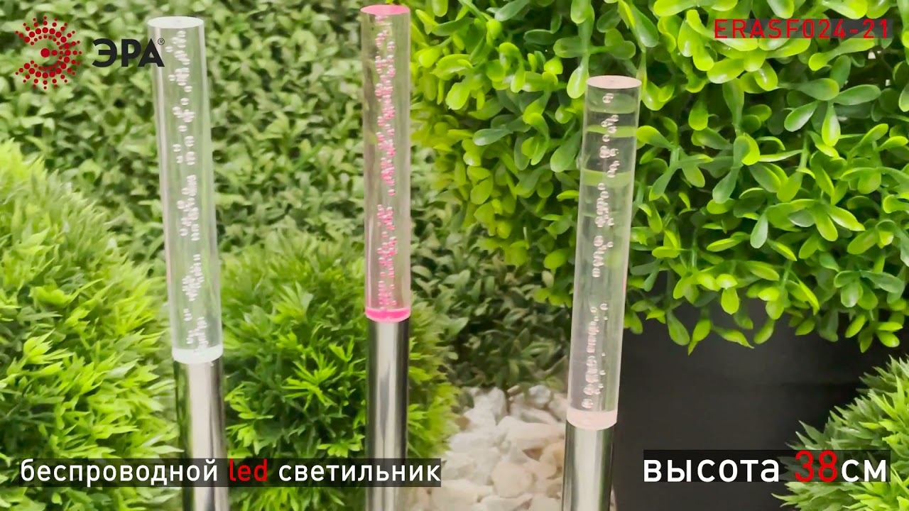 Беспроводной led светильник ERASF024-21 "Пузырьки" станет эффектным украшением вашего сада. В комплект входит 3 светильника, соединенных между собой. Общая длина в 144 см позволит Вам разместить конструкцию в саду, украсить декоративный пруд или бассейн, необычно подсветить дорожку или придомовую территорию. Фигурки из ударопрочного пластика высотой 38 см с легкостью вставляются в землю. Садовый светильник функционирует на солнечной батарее. Такой вид получения энергии является наиболее экологичным, энергоемким, а также бесшумным. Питание происходит во включенном режиме, днем. Самое интересное начинается после захода солнца. Пузырьки начинают медленно переливаться желтым, зеленым и оранжевым цветами. Такое световое шоу будет эффектно смотреться в особо затемненных местах участка. Эффект пузырьков придает светильнику особой динамики. Работа от солнечной батареи рассчитана 8 часов непрерывной работы. Высокий уровень пыле и влагозащиты позволяет оставлять светильник на улице даже во время дождя. Декоративный светодиодный светильник от бренда ЭРА – лучший вариант для украшения Вашей территории. В электронном каталоге ЭРА: https://www.eraworld.ru/catalog/2649619 Официальный сайт ЭРА: http://www.eraworld.ru/ ЭРА в соцсетях: https://www.instagram.com/era_russia https://vk.com/era.russia https://www.facebook.com/ERA.russia/ https://m.ok.ru/era.russia/