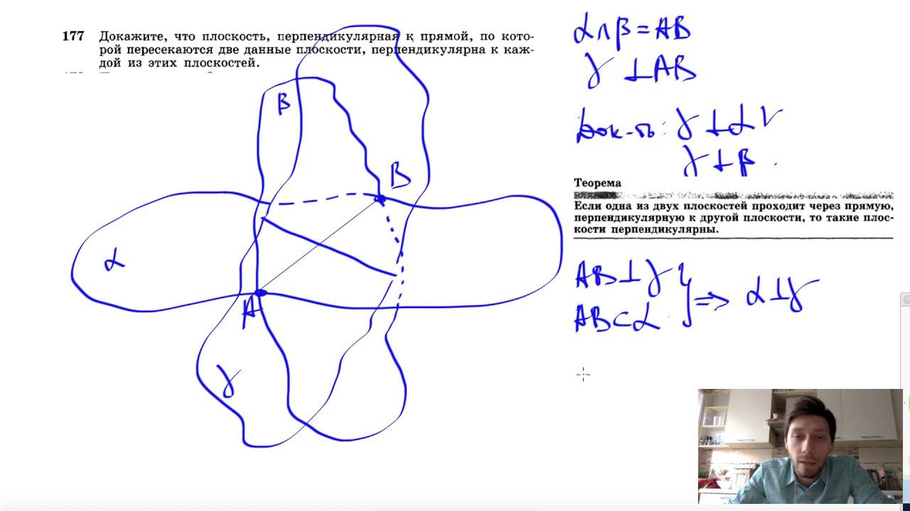 №177. Докажите, что плоскость, перпендикулярная к прямой, по которой пересекаются две данные плоскости, перпендикулярна к каждой из этих плоскостей. Поддержать канал рублём - 5469400944002125 (Сбербанк) Мой второй канал для подготовки к ЕГЭ и ОГЭ - https://www.youtube.com/ЕвгенийСумин Инстаграм - https://www.instagram.com/EGE_OGE.math Личный инстаграм - https://www.instagram.com/ee_sumin VK - https://vk.com/evgeniysumin FB - https://www.facebook.com/EvgeniySumin