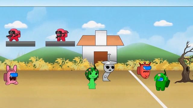 Среди нас против суперсемейки Спрунки ПИНКИ в игре с кальмарами 3 сезон мультфильм, анимация