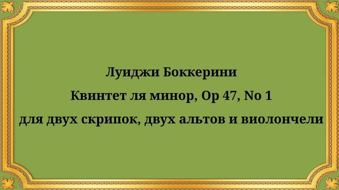 Луиджи Боккерини Квинтет ля минор, Op 47, No 1, для двух скрипок, двух альтов и виолончели
