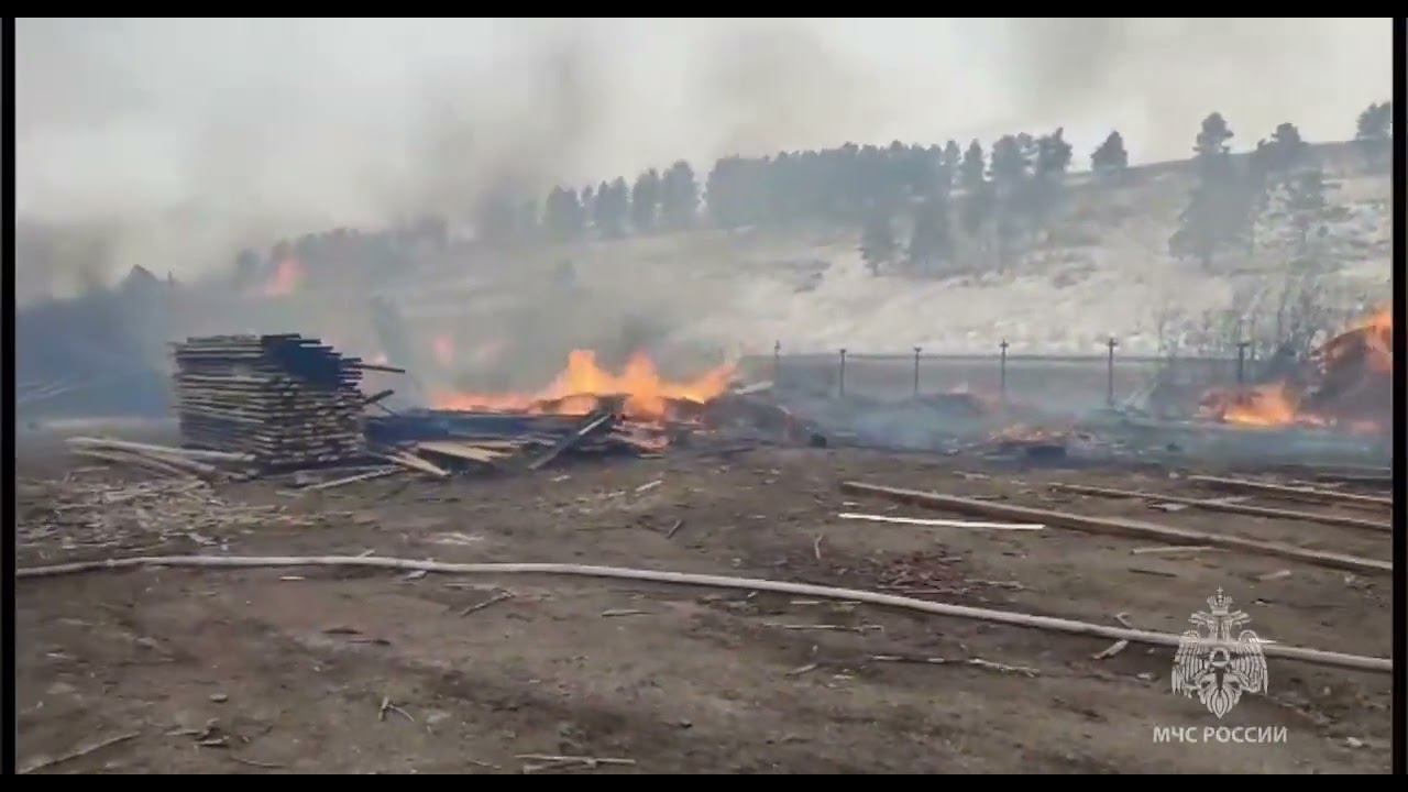 Пожар на складе пиломатериала в Иркутском районе