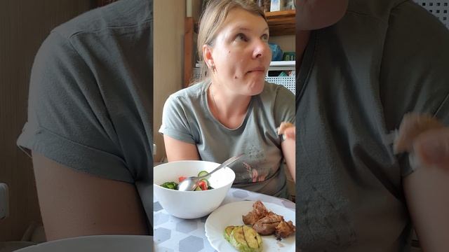 Мукбанг. Шашлык, кабачки, салат
