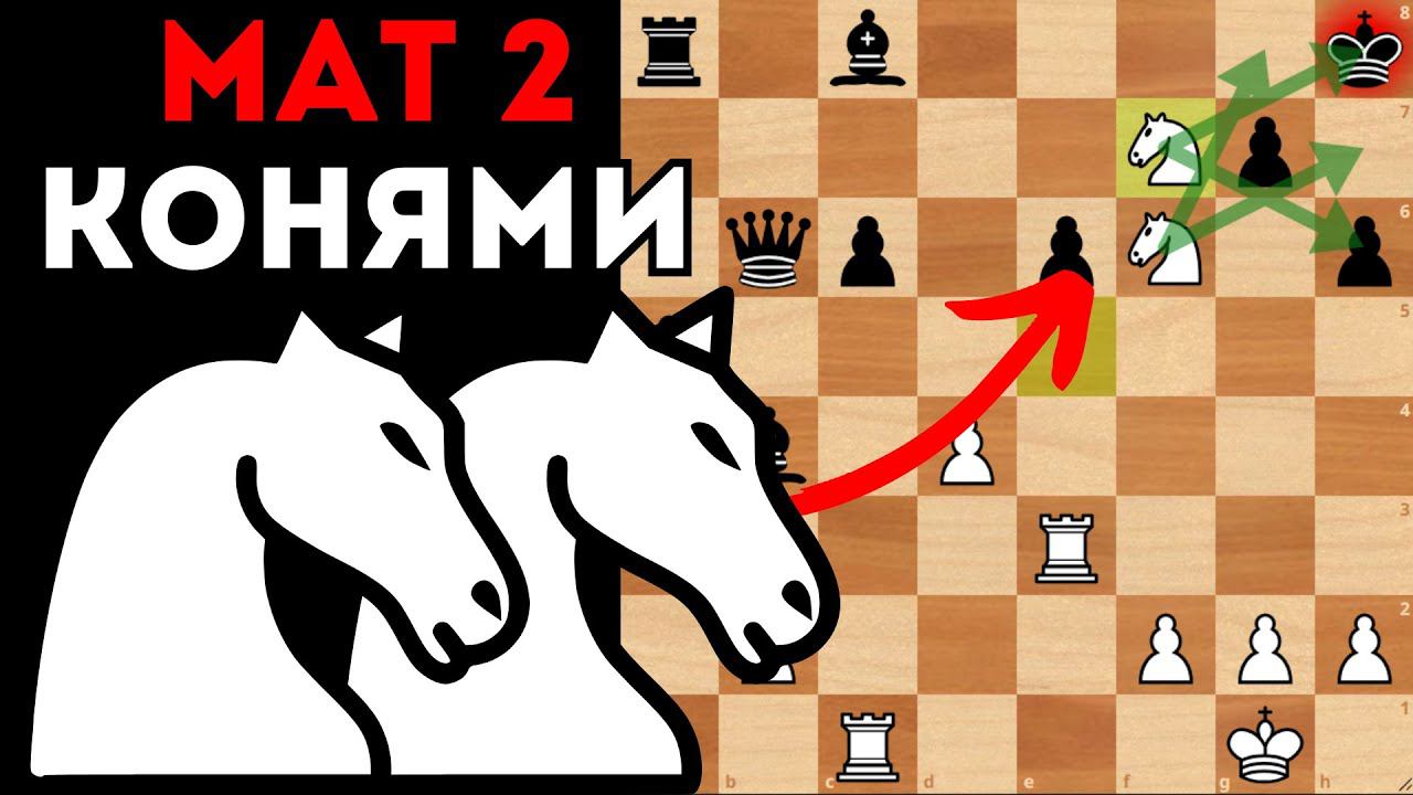 Красивый мат 2 Конями с жертвой Ферзя. Шахматы