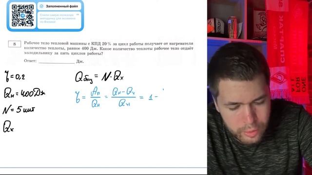 Рабочее тело тепловой машины с КПД 20 % за цикл работы получает от нагревателя количество - №20902