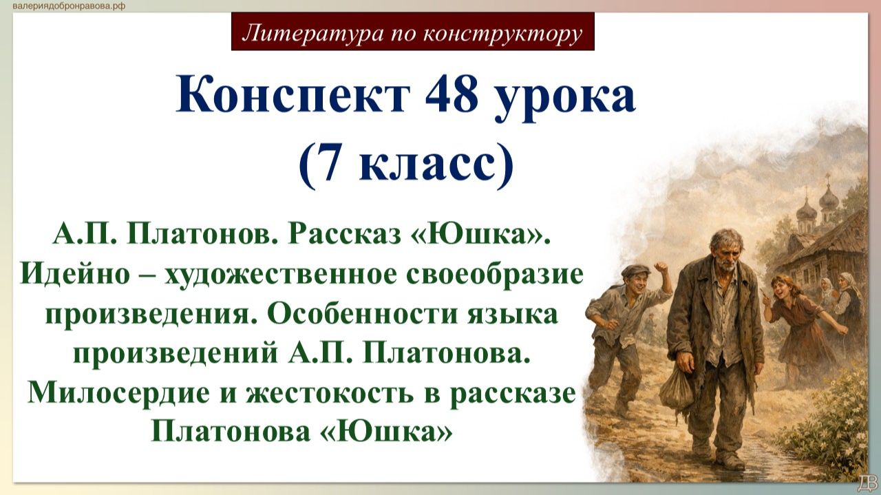 48 урок литературы 7 класс. А.П. Платонов. Рассказ «Юшка». Идейно – художественное своеобразие