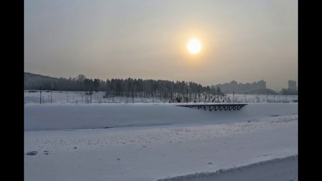 Белый снег, белое солнце, деревья в белом наряде. но уде осыпается красота + гало