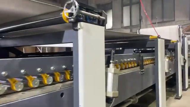 Технические характеристики гофропресса SF10A-1400: Рабочая ширина: 850-1450 мм; Макс. скорость100м/мин; Теплоноситель: Масло (электричество); Рабочая скорость: 50-70 м/мин; Диаметр гофровалов 293 мм. Валы изготовлены из высококачественной легированной стали марки 50 CrMo. Поверхность валов хромирована; Толщина станины станка: 130 мм; Диаметр прижимного вала: 267 мм; Диаметр клеевого вала: 215 мм; Диаметр клеесьемного вала: 128 мм; Диаметр преднагревательного вала: 320 мм Диаметр вала, через который заводят материал: 110 мм. Технические характеристики клеепромазочной машины GM-20: Рабочая ширина: 1400мм; Макс. скорость: 100 м/мин; Диаметр клеевого вала (мм): 215; Диаметр клеесьемного вала (мм): 122; Электромаслянный нагрев. Технические характеристики сушильного стола SM-10: Рабочая ширина: 1400 мм; Макс. скорость: 150 м/мин; Поверхность сушильных плит отшлифована, шероховатость Ra=0,63; Макс давление пара: 1.6 МПа; Рабочее давление пара: 0,8 ~ 1.3 МПа; Потребление пара: 1.2 ~ 1.8 T / ч; Ширина сушильных плит: 600 мм; Сушильная секция: 7200мм (600 мм × 12), охлаждающая секция: 4000 мм; Прижим гофрокартона к сушильным плитам осуществляется при помощи прижимных валов и системы прижимных башмаков; Пневматический привод спуска/подъема прижимных валов сушильного стола; Автоматическая коррекция осевого положения верхнего сукна сушильного стола с пневматической натяжкой. Ручная коррекция нижнего сукна охлаждающей части; Валы привода сушильно-охлаждающего стола имеют двухслойную обрезиненную поверхность и направленный рисунок, для предотвращения проскальзывания сукна; Стол укомплектован верхним и нижним сукном из комбинированного полусинтетитеческого материала; Главный привод сушильного стола располагается раздельно от самого гофроагрегата; Стальные валы покрыты износостойкой резиной высокого качества. ООО "ГофроТайм" www.gofrotime.ru