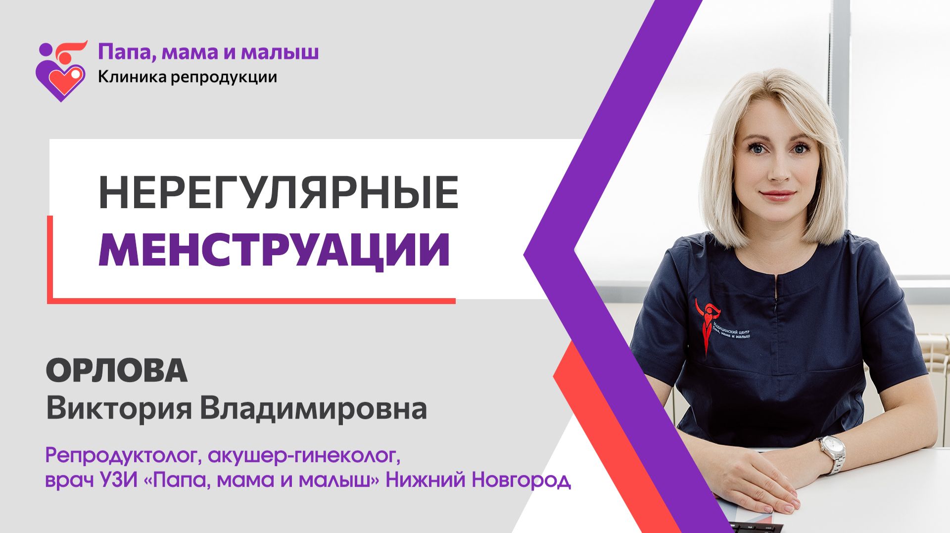 Врач-репродуктолог клиники "Папа, мама и малыш", Орлова Виктория Владимировна рассказывает о том, когда нерегулярные менструации могут стать сигналом для обращения к специалисту. Узнайте, какие проблемы могут скрываться за слишком длинным или коротким циклом и что является основными причинами нерегулярности. Подробная информация для тех, кто хочет разобраться в своем здоровье и своевременно обратиться за помощью. г. Н. Новгород, ул. М. Горького, 195 +7 (831) 435-19-99 www.hotim-rebenka.ru Вконтакте: https://vk.com/papa_mama_i_malish ООО «Академия женского здоровья и репродукции человека» Лицензия № Л041-01164-52/00383796 от 18.02.2019 г. 18+ Имеются противопоказания. Необходима консультация специалиста #нерегулярные_месячные #менструация #репродуктология #женскоездоровье #ПапаМамаМалыш #беременность #цикл #лечениебесплодия #репродуктолог #ЭКО #бесплодие