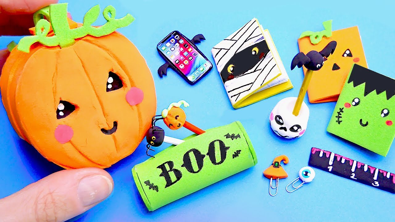 13 миниатюрных аксессуара для кукол на Хэллоуин - школьный рюкзак, ручка, пенал | Простые поделки