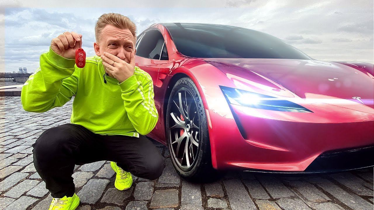 Мне подарили машину Теслу в Украине за 24.000.000 рублей ! Первый обзор в России на Tesla Roadster