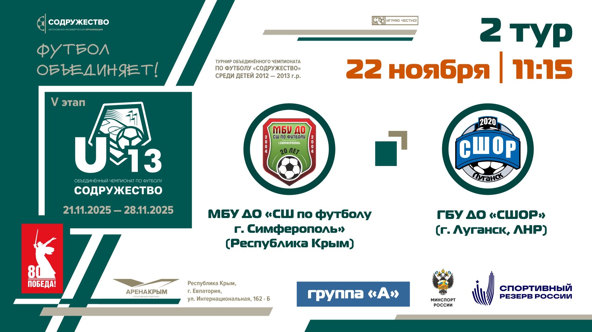 2 ТУР [Группа А] | МБУ ДО «СШ по футболу» (г. Симферополь) - ГБУ ДО «СШОР» (г. Луганск) | 22.11.25