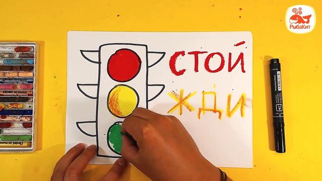 Как нарисовать СВЕТОФОР - уроки рисования от РыбаКит
