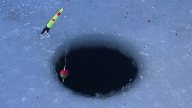 Много рыбы в замерзшем озере.