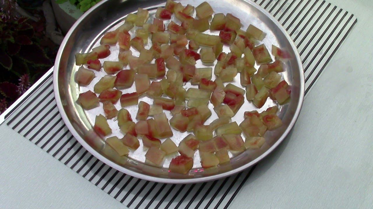 Арбузные корки-430 гр Сахар-500 гр Лимон-1 шт Вода-0,5 л Сахарная пудра-50 гр