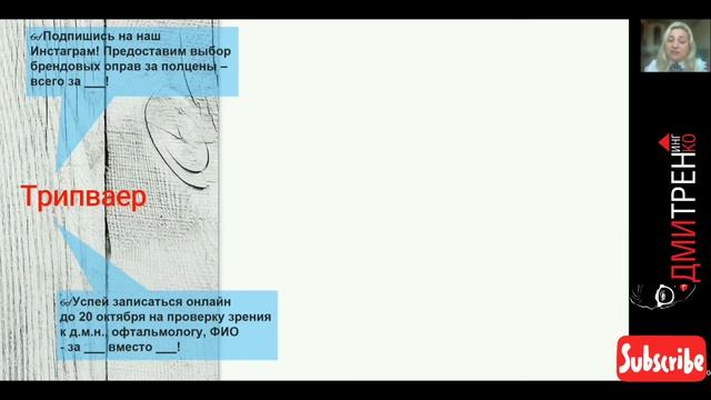 Эту запись пришлось делать по вашим просьбам, так как на основном вебинаре были технические проблемы со звуком:https://youtu.be/7cVPqMYATc4 Омниканальный продавец оптики - кто это? ⠀ Какие вопросы освещены в вебинаре⤵️ ⠀ Адаптация Почему одним легко совмещать эффективную работу на онлайн- и офлайн-площадках, а другим — нет? Как преодолеть "барьер" сотрудникам оптики и выйти в новый формат продаж, сохраняя высокие результаты? ⠀ Мотивация Нужно ли менять мотивационную программу под онлайн-продажи или показатели эффективности не зависят от канала продаж? ⠀ Продажи Процесс интернет-продаж происходит так же, как в салоне оптики? Как усилить коммуникацию без визуального контакта с покупателем? ⠀ ОФЛАЙН ИЛИ ОНЛАЙН - в чем разница? Обсудили особенности продаж в каждом! ⠀ Ваша Елена, бизнес-тренер по технике продаж в оптике. Обещанные идеи - https://zen.me/8GKBE Читай прикрепленный комментарий, там мои ресурсы, куда можно подписаться и первым получить полезную информацию