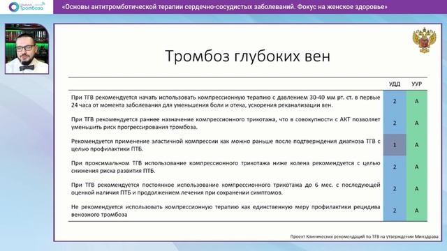 Доклад: "Для чего нужно использовать компрессионный трикотаж при ТГВ?" был представлен на виртуальной Школе Тромбоза "Основы антитромботической терапии сердечно-сосудистых заболеваний. Фокус на женское здоровье", состоявшейся 3 июня 2023 года. В нем освещается вопрос необходимости использования компрессионной терапии при лечении ТГВ, в частности влияние компрессии на риск развития ПТБ, реканализацию вен, рецидив тромбоза. Приводятся современные рекомендации по выбору характера и длительности компрессионной терапии. Автор - к.м.н. доцент Лобастов К.В. Представленные алгоритмы можно найти по ссылке: https://clc.to/thrschl.algoritms2023 Данный материал предназначен исключительно для специалистов сферы здравоохранения и фармацевтической промышленности. Продолжая просмотр, Вы подтверждаете свою принадлежность к названным категориям.