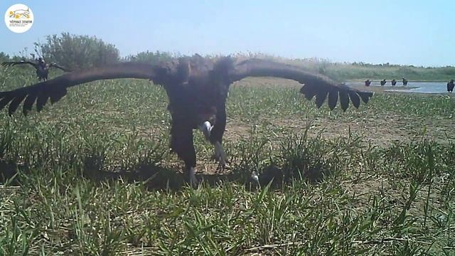 Черные грифы и белоголовые сипы – крупнейшие в стране птицы-падальщики – ежегодно прилетают на Черные земли Калмыкии весной из гор Кавказа, перед массовым отелом сайгаков, чтобы полакомиться погибшими во время родов дикими животными. Все лето, пока неокрепший молодняк сайгаков подвержен повышенной элиминации по различным причинам, они держатся вблизи крупных скоплений сайгаков, прилетая утолить жажду к каналу с водой, пролетающему по границе заповедника «Черные земли». Обладая прекрасным острым зрением, осторожные птицы не подпускают к себе людей на близкое расстояние. И только фотоловушки, установленные научными сотрудниками заповедника на местах их скоплений, позволяют подсмотреть за их внутренними взаимоотношениями. Поедая падаль и являясь по своей сути санитарами, грифы выполняют очень важную роль в дикой природе, не давая распространяться различными болезням. К концу лета птицы начинают покидать степи Калмыкии, ловя потоки восходящего воздуха и попутный ветер в сторону Кавказских гор.