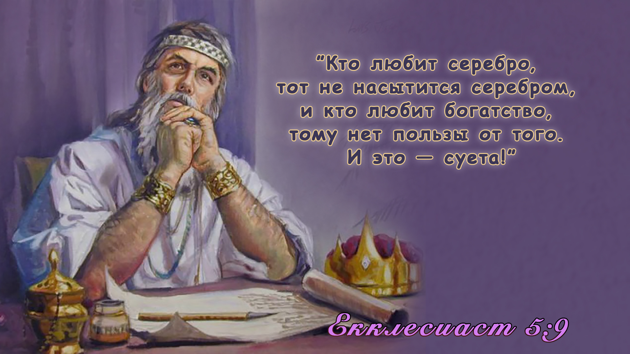 Екклесиаст 5:9 "Кто любит серебро, тот не насытится серебром, и кто любит богатство, тому нет пользы от того. И это — суета!"