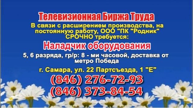 Вакансии и телефоны прямых работодателей в специализированной программе по трудоустройству "Телевизионная Биржа Труда" - г.САМАРА, г.ТОЛЬЯТТИ т/к РЕН-ТВ