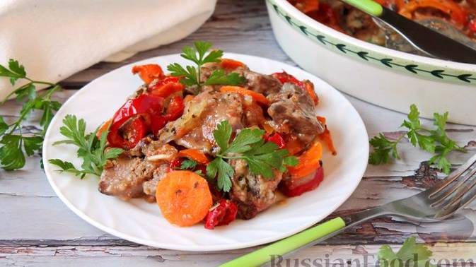 Куриная печень запекается с болгарским перцем, морковью и луком в соусе из помидоров, дополненном чесноком и базиликом. Приготовление довольно простое, времени много не отнимет, а блюдо понравится за нежный вкус куриной печени и прекрасный аромат овощей. #КуринаяПечень #ПеченьЗапечённаяСОвощами