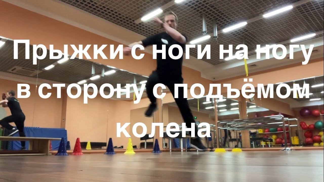 Прыжки с ноги на ногу в сторону с подъёмом колена