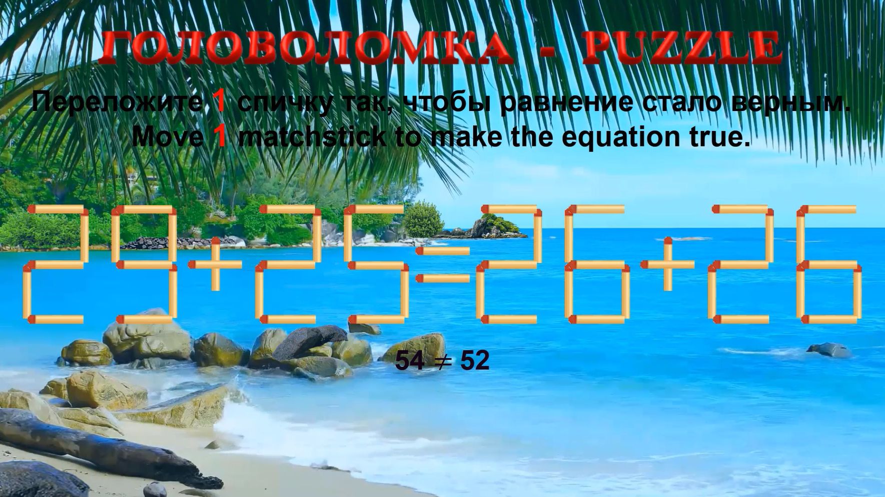 Головоломка со спичками с ответами для развития мозга, забавная математика со спичками. Логические задачи Загадки на спичках Проверьте свои навыки критического мышления и логического рассуждения с помощью этих забавных головоломок со спичками, которые проверят ваши способности к решению задач. Если вам нравятся эти математические задачи, ставьте лайки и подписывайтесь на мой канал, чтобы получать больше интересных видео! Повысьте IQ. Только 1% смогут решить эту головоломку со спичками, чтобы выиграть! головоломки со спичками с ответами трюки со спичками Проверьте свой ум и логику и попробуйте решить эти головоломок. Только самым умным под силу эти хитрые задания. Тренируйте свой мозг, ему нужны такие же нагрузки, как и вашему телу. Напишите в комментариях, сколько загадок вам удалось решить Океан. Океанская атмосфера Сегодня мы наслаждаемся расслабляющей атмосферой океана Находится тихий и прекрасный пляж Наполняющая воздух и успокаивающая разум Чистые звуки волн и освежающий океанский пейзаж Освежающее море и чистый, нежный звук волн.
