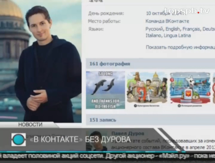 Если Павел Дуров действительно собирается покидать свой пост, он должен подать заявление за месяц до даты увольнения. Так возможный уход из компании основателя «Вконтакте» прокомментировала Нафиса Насырова, пресс-секретарь фонда UCP, который владеет половиной акций соцсети. Аналитик: Дуров понял, что «Вконтакте» - это пройденный для него этап Другой акционер - Мэйл.ру пока не комментирует заявление Дурова. Сегодня в своём профиле он разместил обращение к пользователям, в котором сообщил о сложении с себя обязанностей генерального директора «Вконтакте». Вот, что пишет Дуров: «В результате событий, последовавших за изменением акционерного состава «Вконтакте» в апреле 2013 года, свобода действий генерального директора в управлении компанией значительно сократилась. Становится все сложнее отстаивать те принципы, которые некогда были заложены в основу нашей социальной сети». Экстравагантный интернет-гений, возможно, неслучайно разместил обращение именно 1 апреля, оставив почву для сомнений в серьёзности заявления.